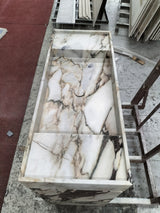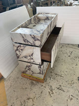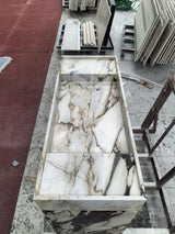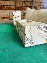 All of our sinks and vanities come with custom stone drain covers.