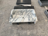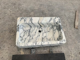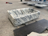 The Amina sink is hand-carved from a single piece of stone, allowing for its rounded edges.