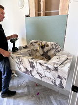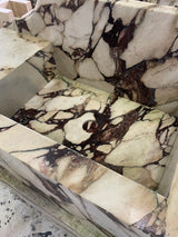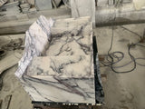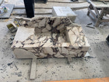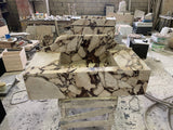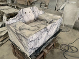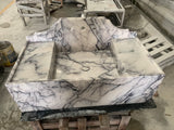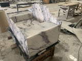 The Charlotte sink was initially commissioned for a custom project but became part of our permanent collection by popular demand. This sink features a robust, rustic design with a backsplash that gracefully extends down the sides. The base is crafted from a single piece of natural stone, showcasing its seamless and sturdy construction.